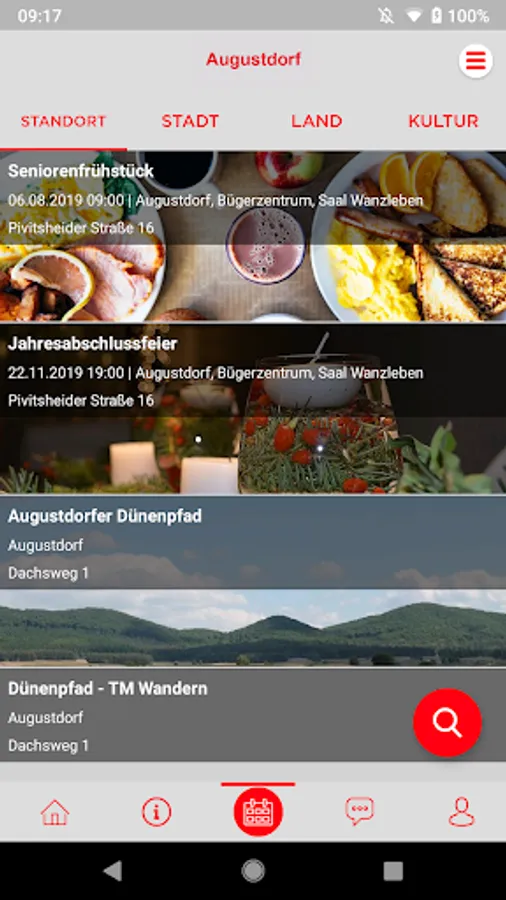 The button "CALENDAR" is the main focus of this app with current events sorted by time, location, city, country and culture. For each of these sectors you will be presented with a choice of 16 offers depending on the selected location. With "Subcribe" you take over your desired date in your own calendar. Your cellphone will remind you in time and by clicking on the transferred address your navi leads you to that venue. By clicking the red magnifying glass you can use our events calendar interactivly by date, city and categories.
