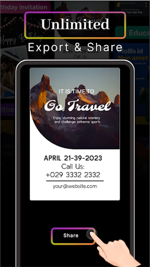 This incredible Flyer Maker helps you Create mesmerizing Flyers, Banners, and Posters with a lot of templates to Create art on your canvas. This exceptional Poster Maker can help you establish your own mood board with no master skills. Create your Banners with our Poster Maker Flyer Maker App.