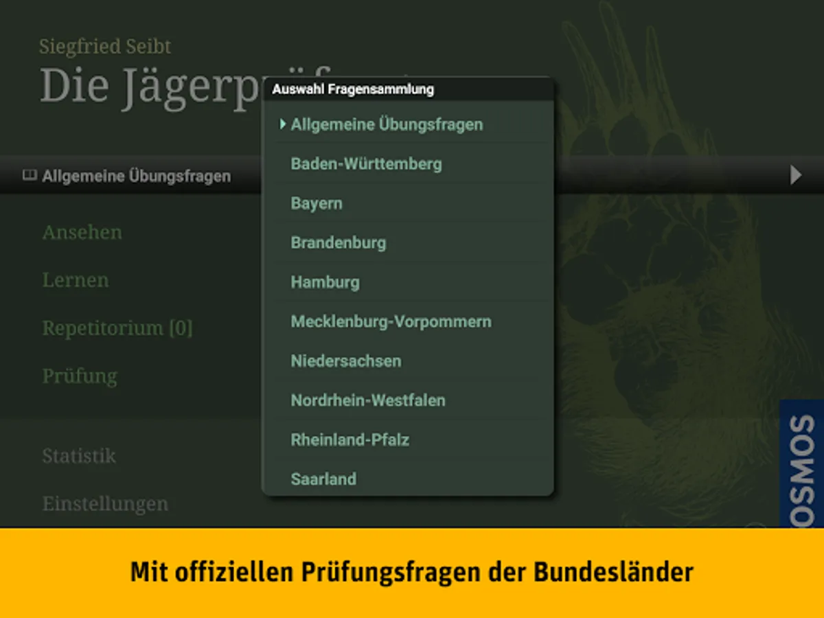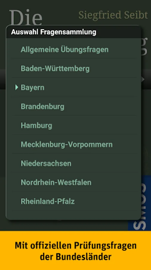 The test relevant question pools the federal states of Baden-Wuerttemberg, Bavaria, Brandenburg, Hamburg, Mecklenburg-Western Pomerania, Lower Saxony, North Rhine-Westphalia, Rhineland-Palatinate and the Saarland enable precise country-specific preparation for testing and stalking.