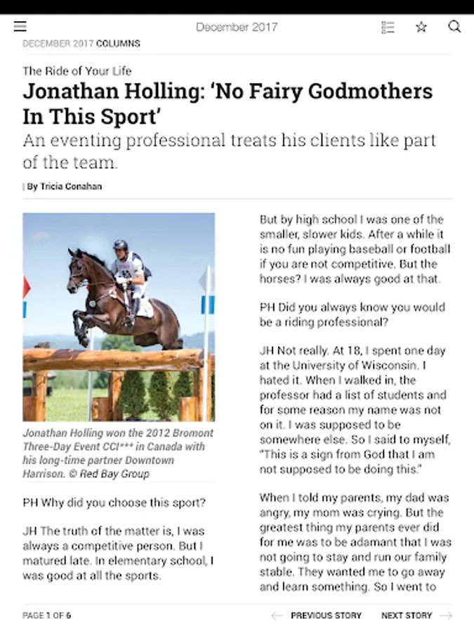 True to its name, Practical Horseman magazine provides hands-on, instructive articles on riding and training, horse care and competition for English riders in hunters, jumpers, equitation, dressage and eventing. Clearly written, skillfully photographed step-by-step articles bring the expertise of top equestrians to the magazine's goal-oriented readers. Profiles and features create a sense of community, from top professionals to dedicated amateurs.