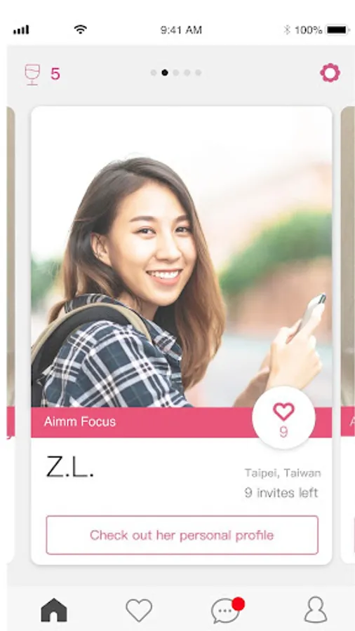 After your profile being approved, you’ll see 10 daily matches and 5 Aimm Focus in one day! You can “like” your daily matches and/or send invite to the Aimm Focus who you think attractive. Mutual likes will open a chatroom for you and your match. The chatroom is totally free and never expires!