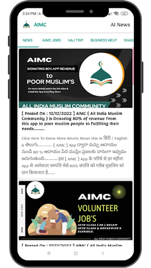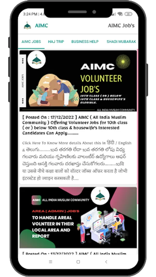 AIMC In this App Users Can Apply For AIMC - Volunteer & Admin Jobs , free Haj Trips & Hej Trip Help , Shadi mubarak , Business Help , Property Loans , Persnol Loans , Veichel Loans ect..
