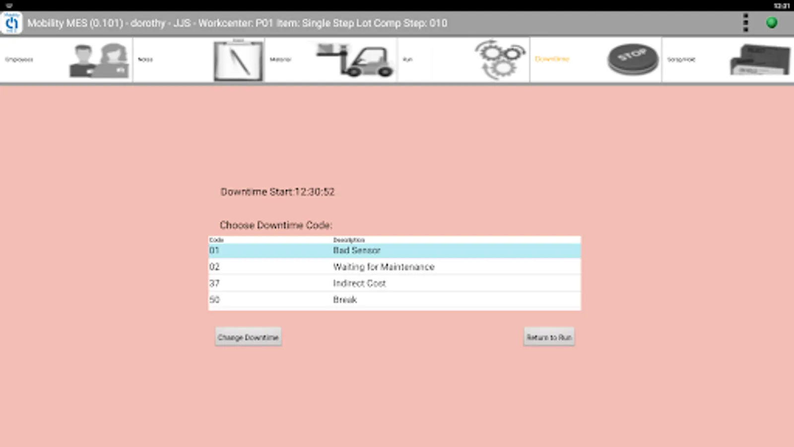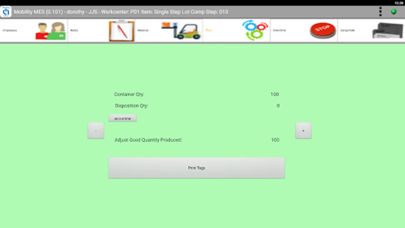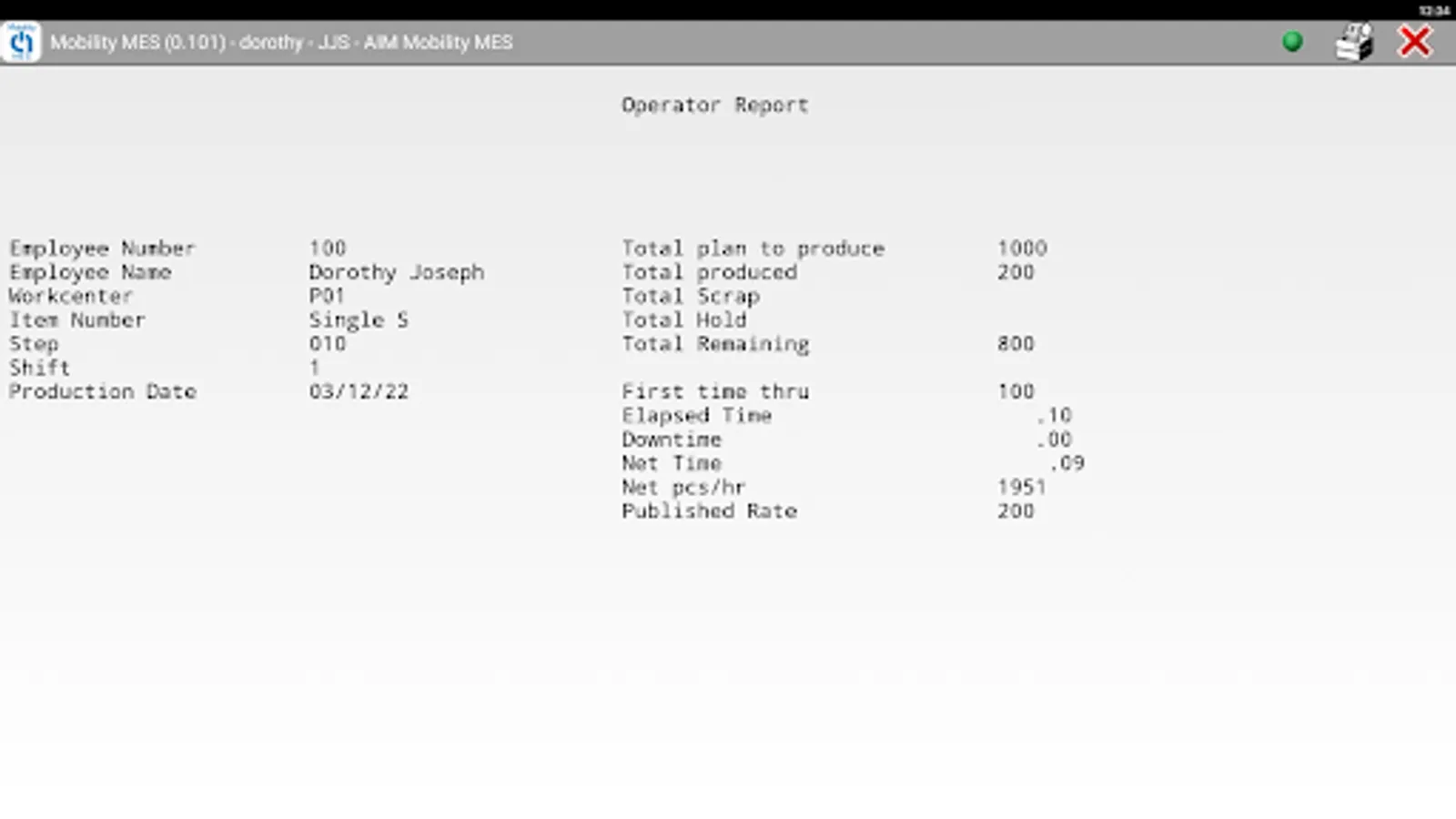 The mobility MES app automates three strategic functions on the shop floor that promote efficiency and accuracy in production management: operator time clock, work center data collection, and workcenter load.