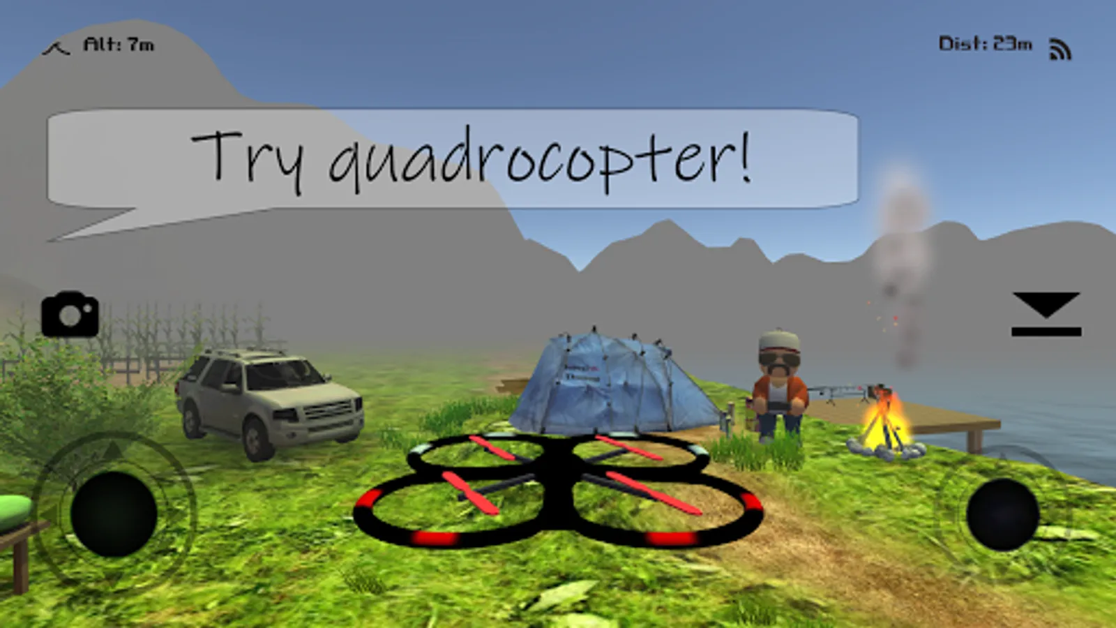 Collect all bait, tent, fly on a quadrocopter. More content in updates :)
