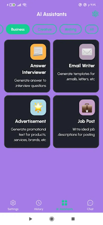 Say goodbye to endless scrolling and fruitless searches. With this ask ai questions app, you have a GPT powered chatbot assistant at your beck and call, ready to provide you with accurate and instant answers to all your queries. Whether it's a burning question, a research topic, or a random trivia, the chat assistant app has you covered. Knowledge is just a conversation away!