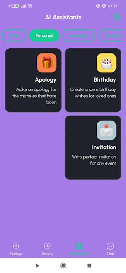 This AI assistant for android is your mobile AI companion. Whether you're on a coffee break, commuting, or simply relaxing at home, the power of AI-assisted conversations is right in your pocket. Seamlessly transition between devices and continue your interactions whenever inspiration strikes.