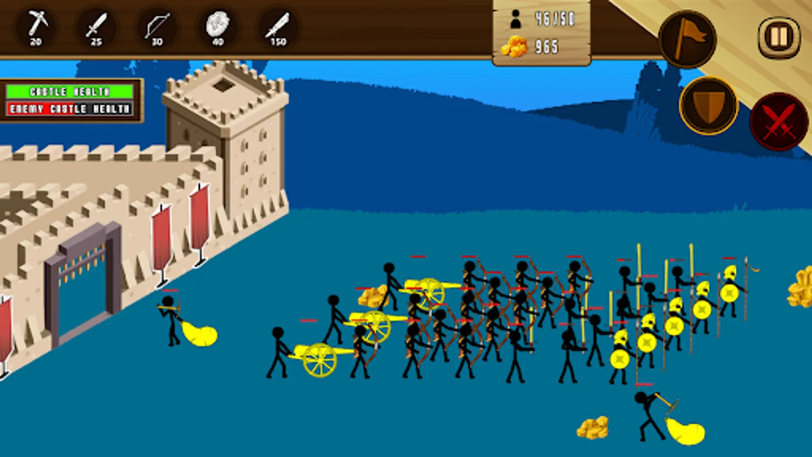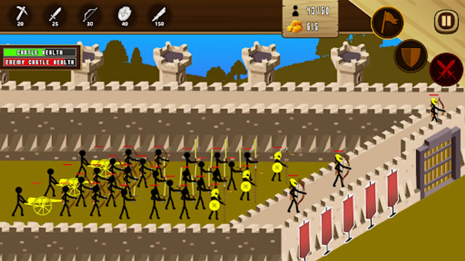 The game admires the legacy of all stickman / stick type games. Its important to defend the castle. And at the same time destroy enemy castle. For that player has to choose his own unique strategy and collect the army to defeat the enemy. Army created can defend inside the castle, outside the castle and also attack. And finally army march to the victory! But don’t be so confident that you can win in this hard war! Leave a legacy by conquering everything! Stick enemy also upgrades it’s soldiers and army, so you should be faster and smarter than him. The only way to do it is to think strategically, and create your own strategy!