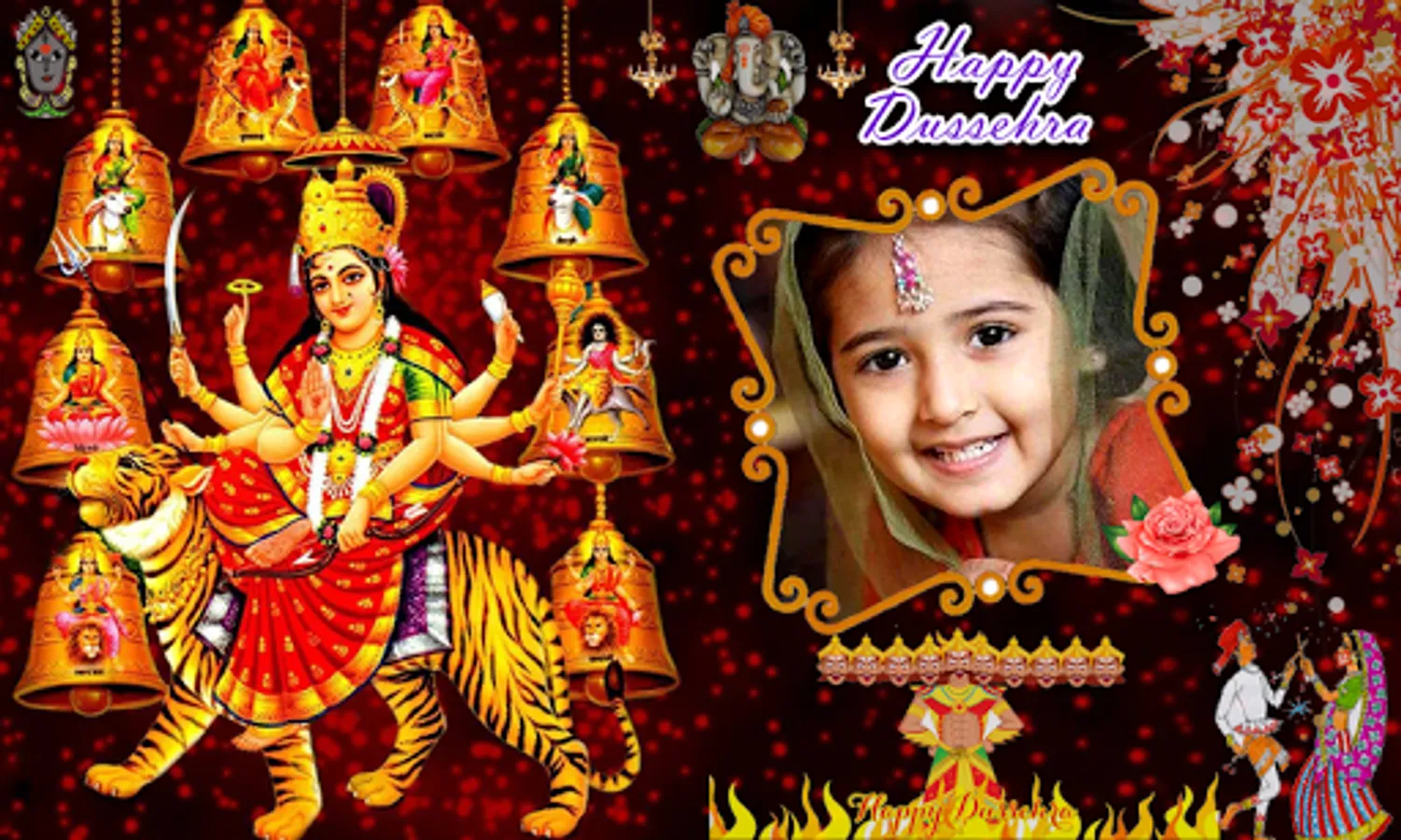 - Finally share your Dussehra festival photo frame send your friends via socail network sites.