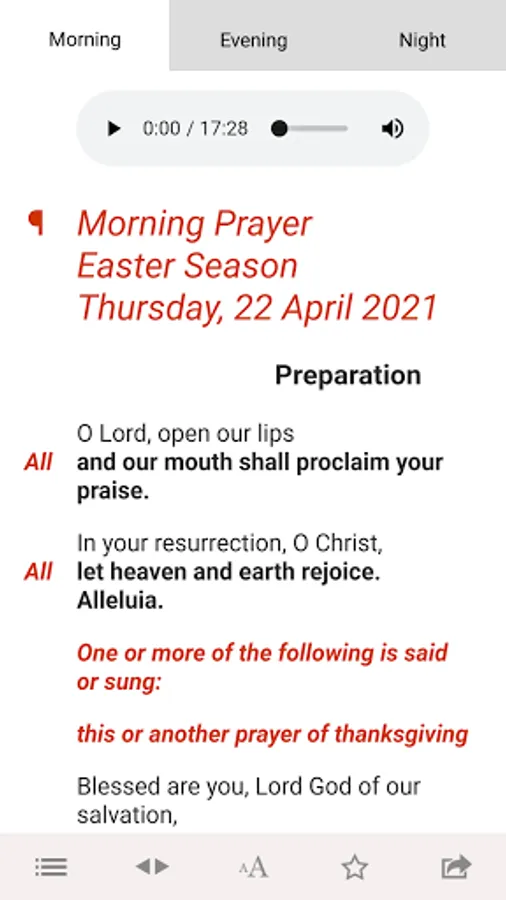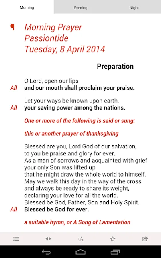 - Access Morning, Evening and Night Prayer for yesterday, today and a month ahead