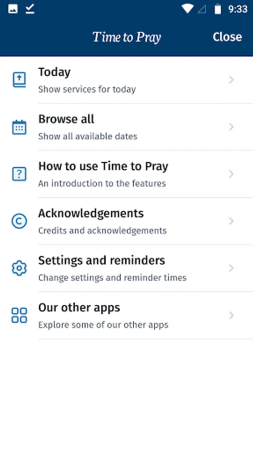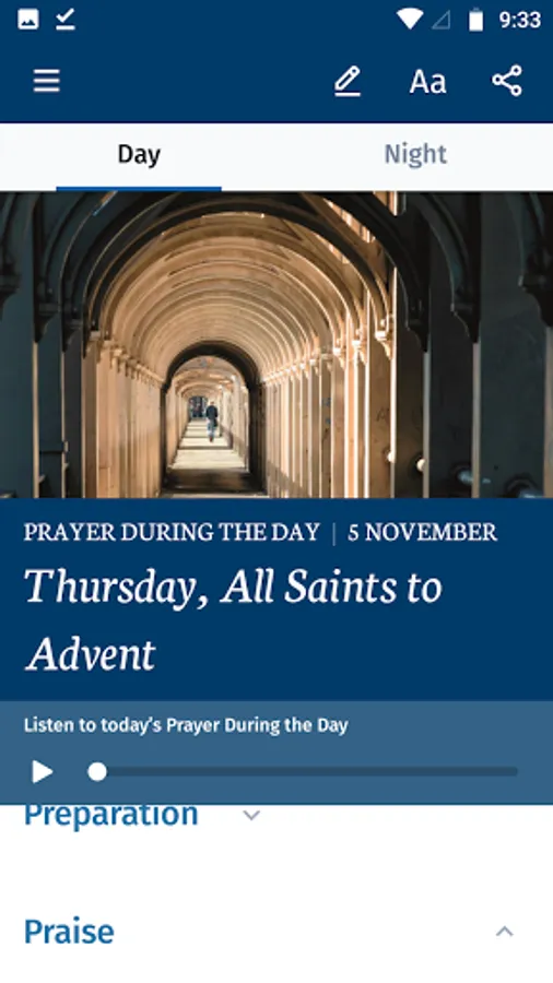 • Full audio is now provided for each service. The app now includes audio versions of both services every day. Tap the play icon to start or pause the audio, and skip forward or backwards through the service using the scroll bar.