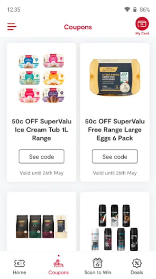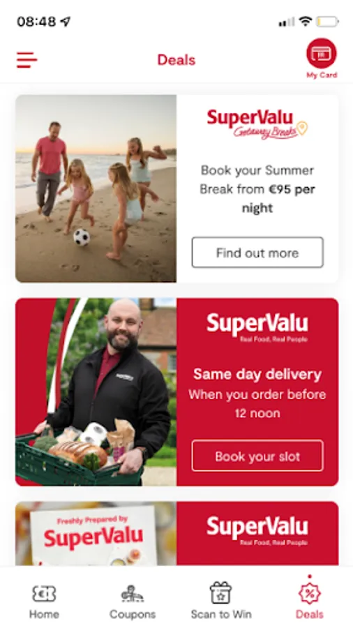 The Real Rewards app is the official mobile app for SuperValu Real Rewards loyalty programme. It makes saving with SuperValu a breeze, just open it and your loyalty card, vouchers and coupons are ready to scan instantly at the till. Quick checkout – easy savings! Don’t have a Real Rewards account? Now you can easily register on the app and start scanning straight away! Once logged into the app you can: