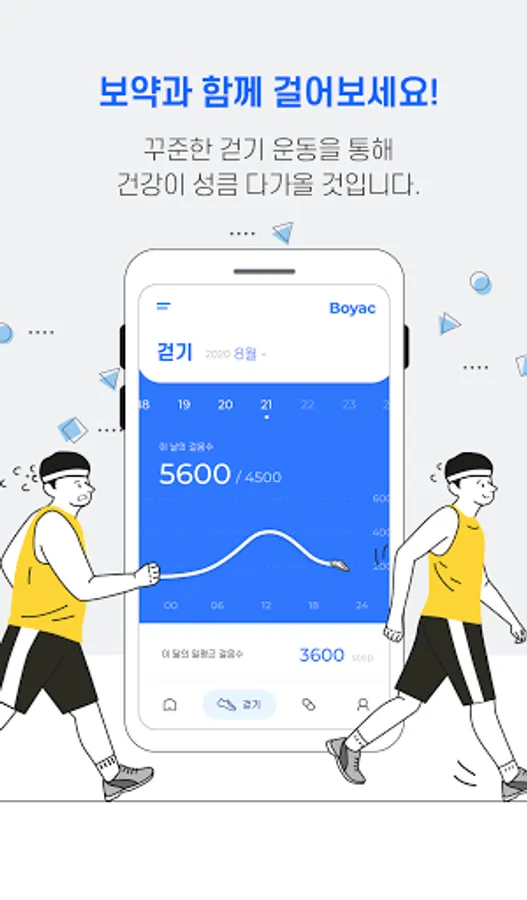 -Provides information such as recommended daily step count, real-time step count, instant feedback message, step count graph by time, and average daily step count per month