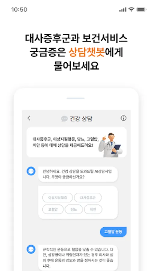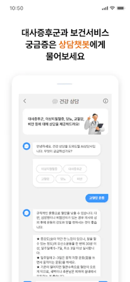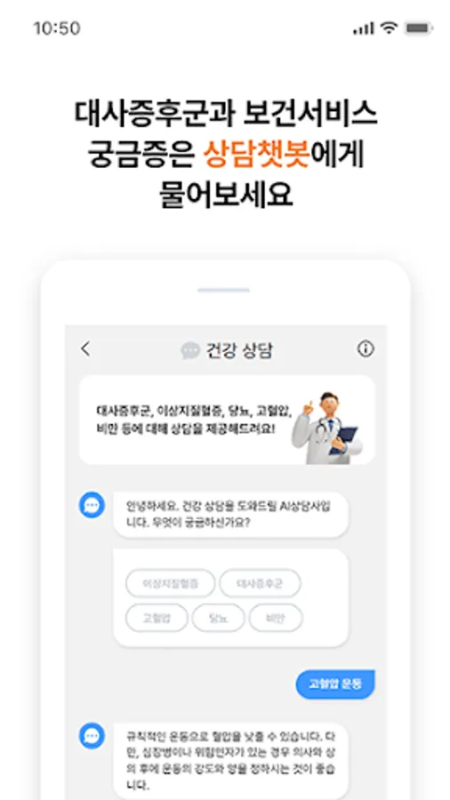If confirmed, the AI care chatbot will run and you can view customized care contents including health information on diseases/nutrition/exercise.