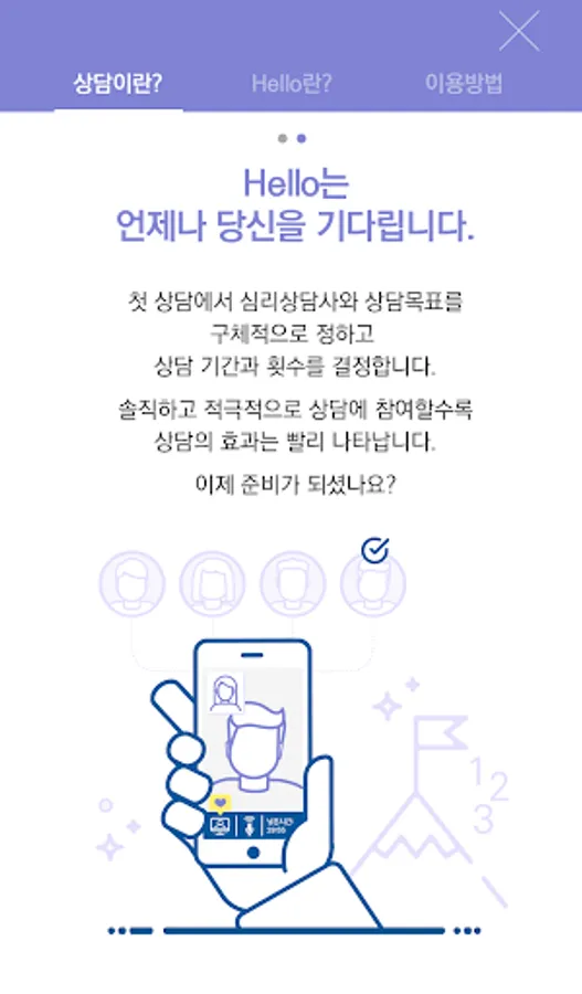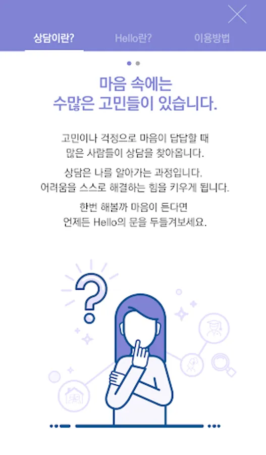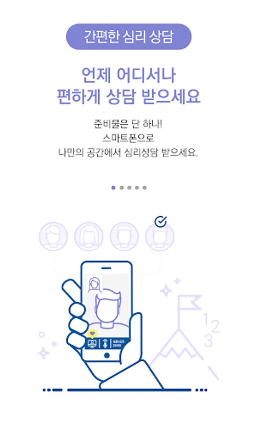 1. Psychological Counseling: You can meet a professional psychological counselor with a certificate accredited by the Ministry of Health and Welfare and the Korean Psychological Association through the app through audio or video. (Reservation/real-time counseling)