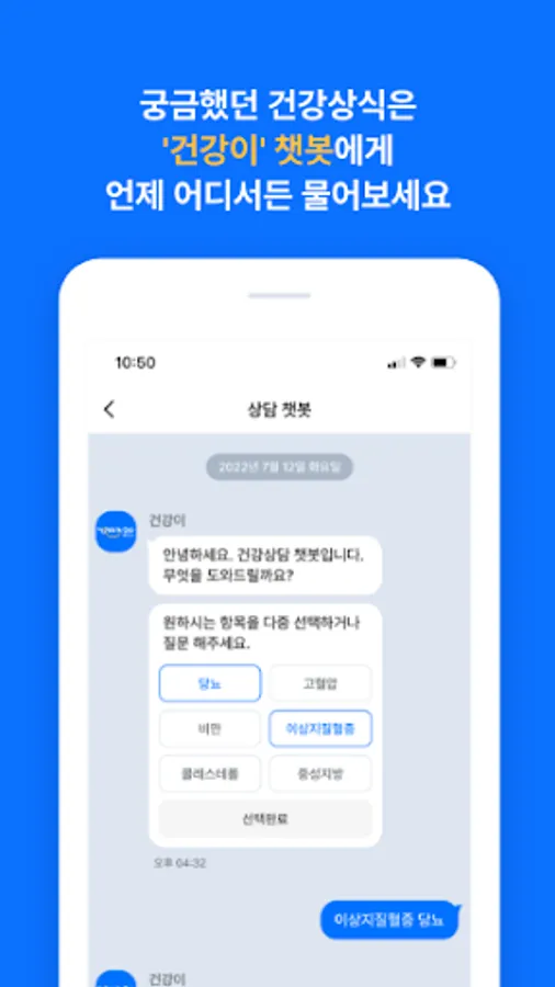Well It Go recommends a care coaching program for each user to manage the risk factors of metabolic syndrome in a healthy way. We will deliver various notifications (push) every week so that users can follow the program well. In addition, you can check customized care contents including health information on diseases/nutrition/exercise once a week through the gun manager chatbot that provides ‘care messages’!