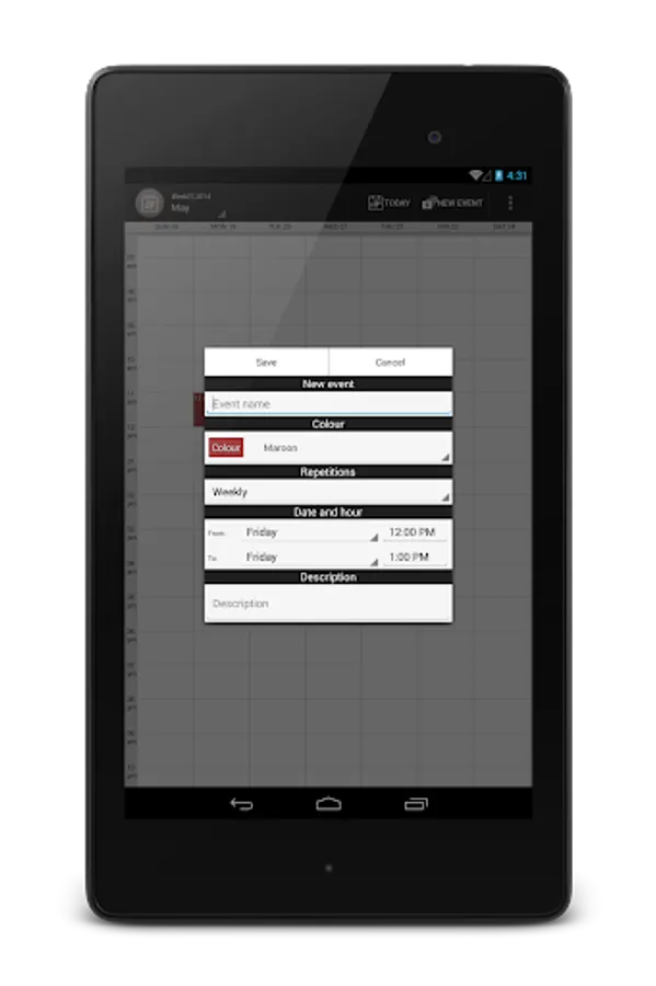Enjoy one of the weekly organizers more simple and elegant Android 4 boxes to home or lock screen with 5 different views to organize your agenda in a simple way.