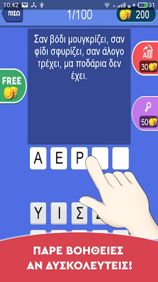 ● Try to find the solution to the riddle, tap each letter in its correct order and form the word.