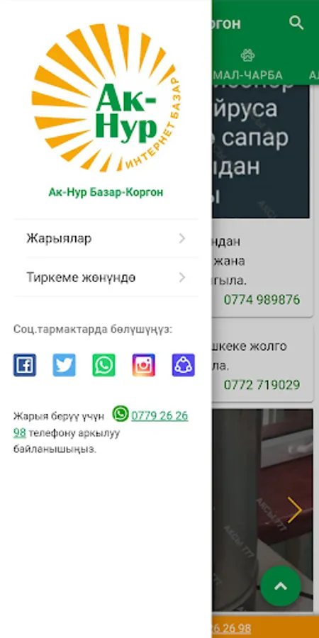 Ak-Nur Bazar-Korgon mobile application is a modern application designed specifically for the population of towns and villages in Bazar-Korgon.