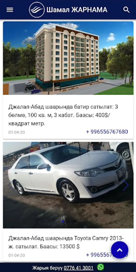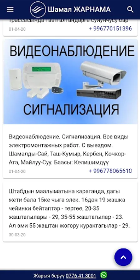 The mobile application "Shamaldy-Sai ADVERTISEMENT" is in Shamaldy-Sai. A state-of-the-art newsletter designed specifically for the public.