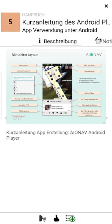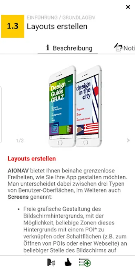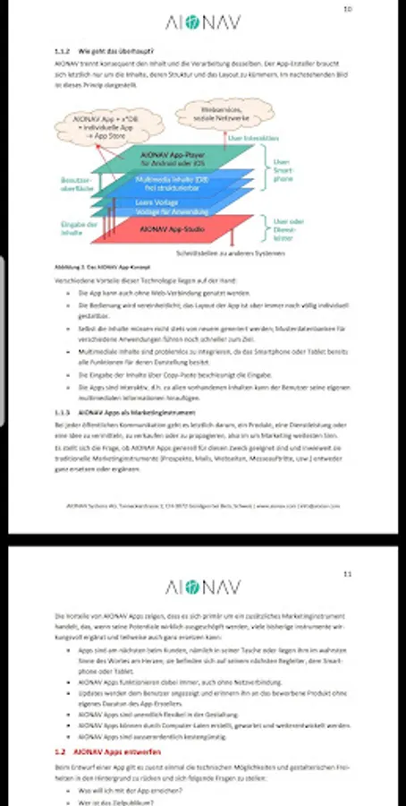 The app not only describes the creation and use of AIONAV apps, but also gives valuable information for the design and layout of the multimedia contents step by step.