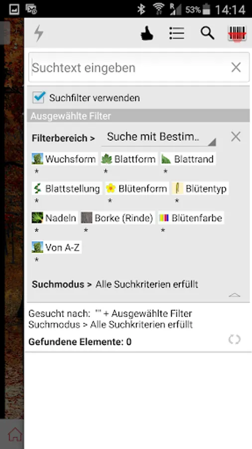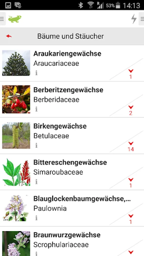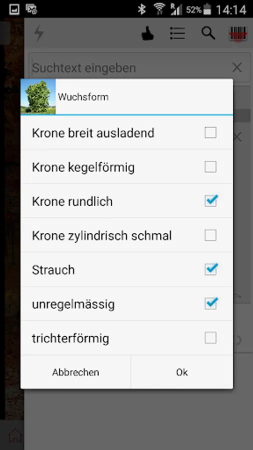 The search for a particular tree or shrub can be done about the plant family or the most common German or Latin name.