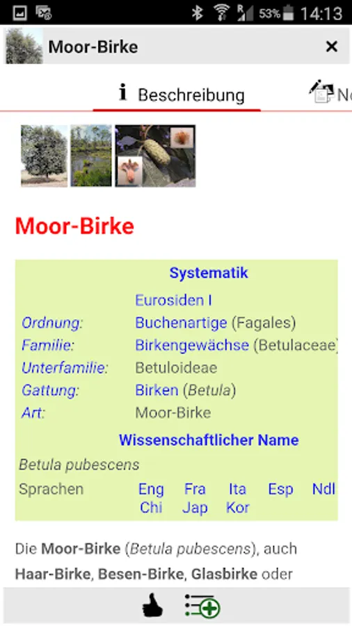 The app also works offline, allowing each plant either directly own observations in words, pictures and video add or to create a separate "Tree Diary". The plants are arranged according to their botanical systematics.