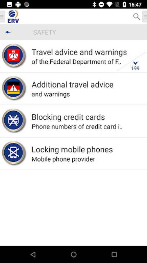 Travel information and support for business travels. Contains an emergency feature for employees being insured by a corporate travel insurance of the Europäische Reiseversicherungs AG, Basel, Switzerland.