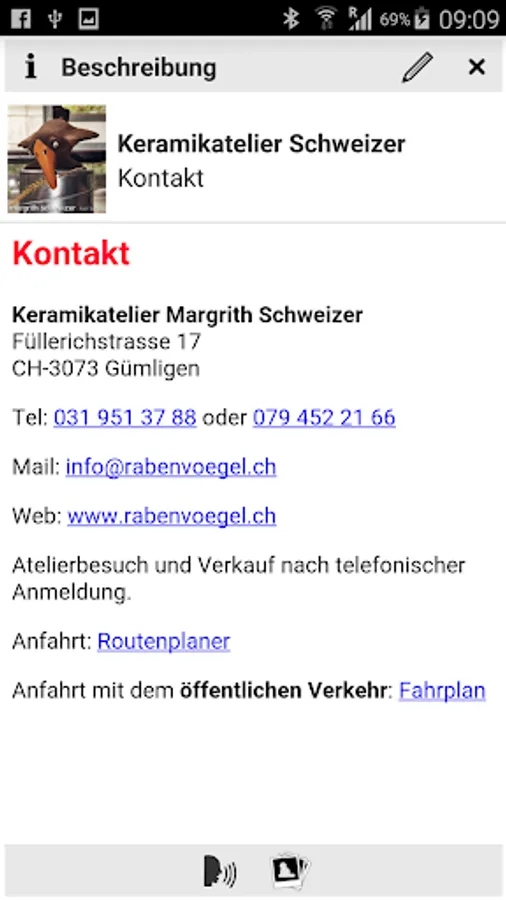 The app for the Swiss Ceramic Studio is one of the first developed with the technology aionav App App. This is characterized by the fact that the app could be created without programming. While the app aionav all functions such as search, filter, positioning, navigate, locate, display, playback, etc. for this purpose, the content (maps, descriptions, pictures, media files) are stored locally on the phone, so that the app without can function network connection.