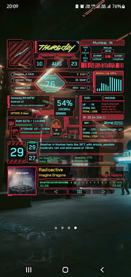 π‘ Data & WiFi Matrix: Keep a watchful eye on your data and WiFi usage with widgets that embody the data-driven essence of Cyberpunk technology.