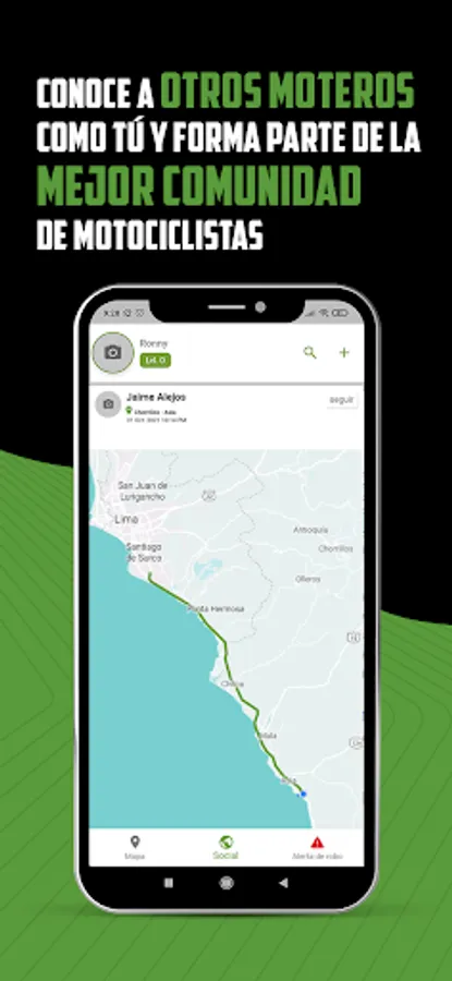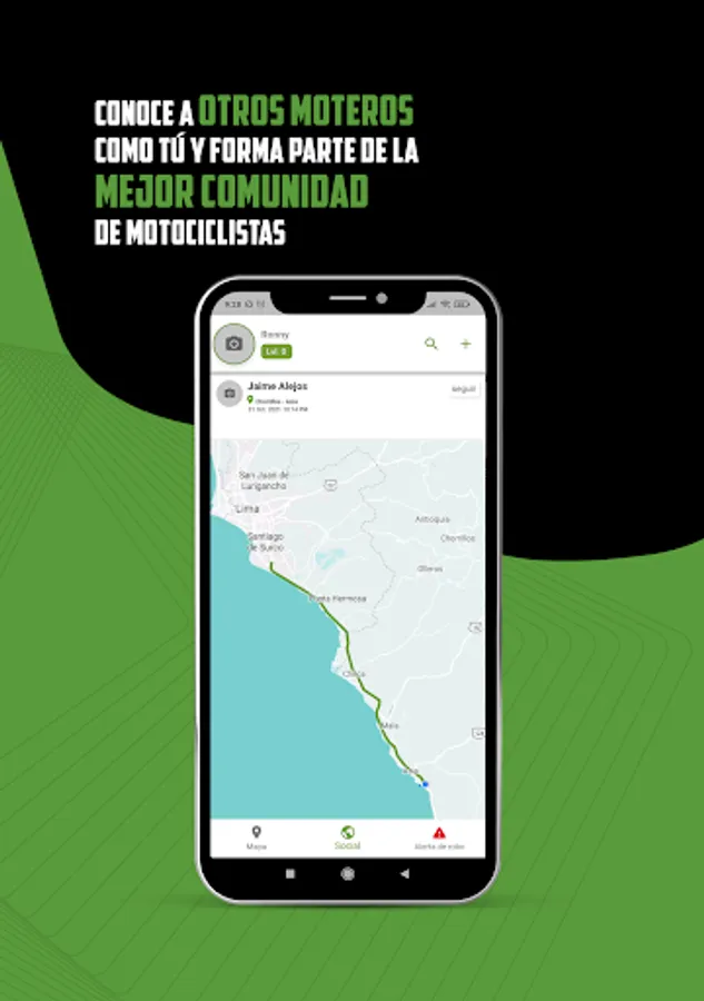 Enter the first social network for bikers in Peru. Find new destinations, the best guides to tour the country and share your trips with other bikers. Also in case of theft we have an alert with which other bikers who are nearby can support you.