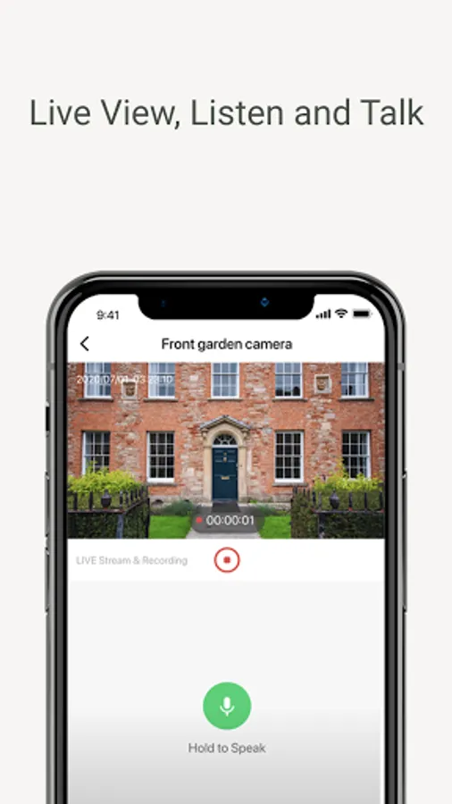‑ Live view, two-way audio: In the case of an emergency, you can immediately watch your mobile phone's live view and use the two-way audio function to have a conversation.