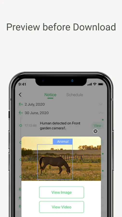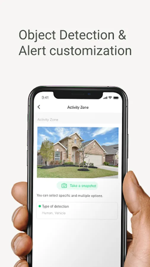 ‑ AI object detection: You can set the categories (people, vehicles, animals) and zones to be recognised. We use AI object detection technology to enhance accuracy and reduce false alarms.