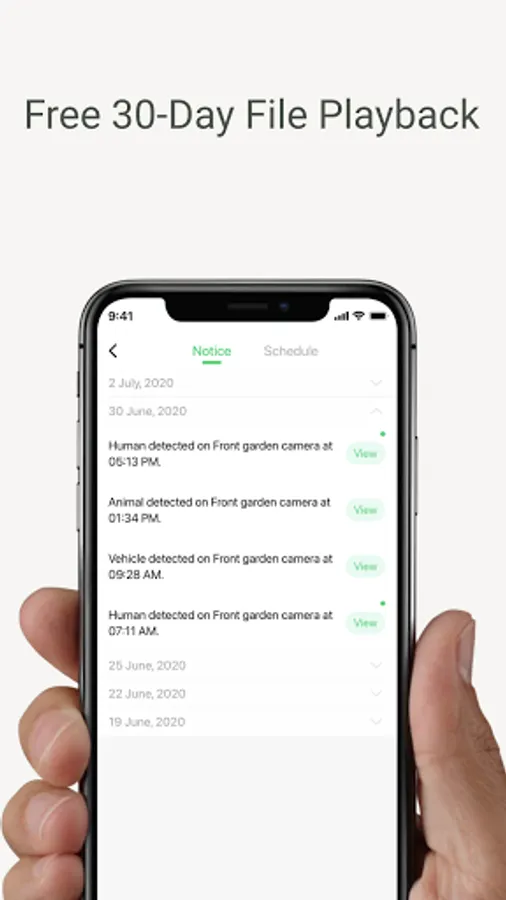 ‑ Free 30-Day file playback: Notifications and videos within 30 days will be saved and can be playback.