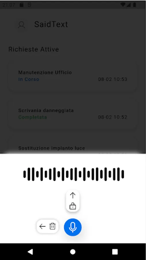 - You will be able to send a new support request in a few seconds, through a simple and intuitive interface, by voice message.