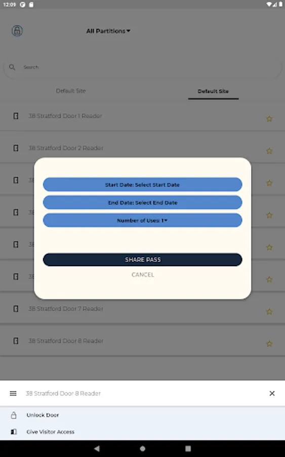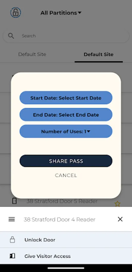 AC Key allows you to create, customize, and grant visitor access credentials directly in the application. Determine the time frame and amount of use for the credential then share this with the visitor. Visitors are not required to have the AC Key application installed to use their credentials. Administrators have the ability to allow or deny users from granting visitors access as well as revoking a visitor pass after it is issued.