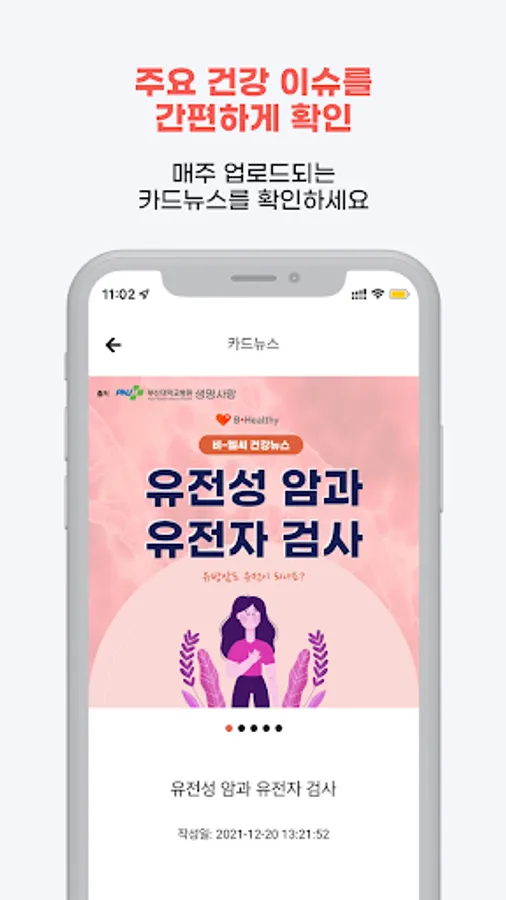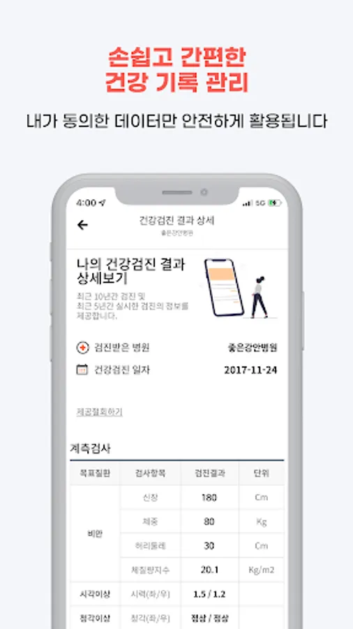 By simplifying the existing complex procedures, you can conveniently check health checkup results, prescriptions, genetic test results, etc., and you can also check health reports based on your health checkup results.