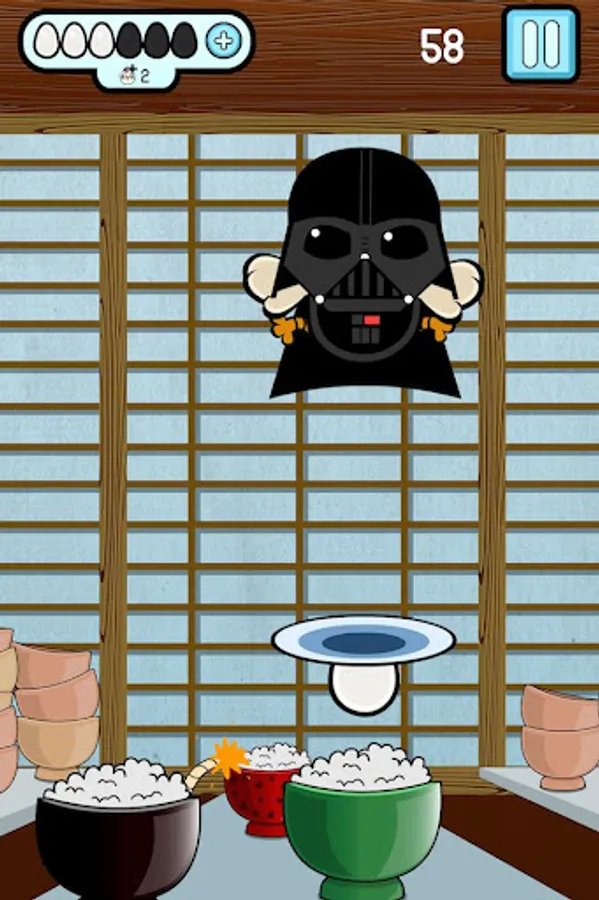 3) Japanese rice bowls will start coming towards you. Then, when you've positioned the
