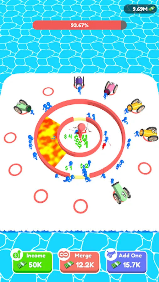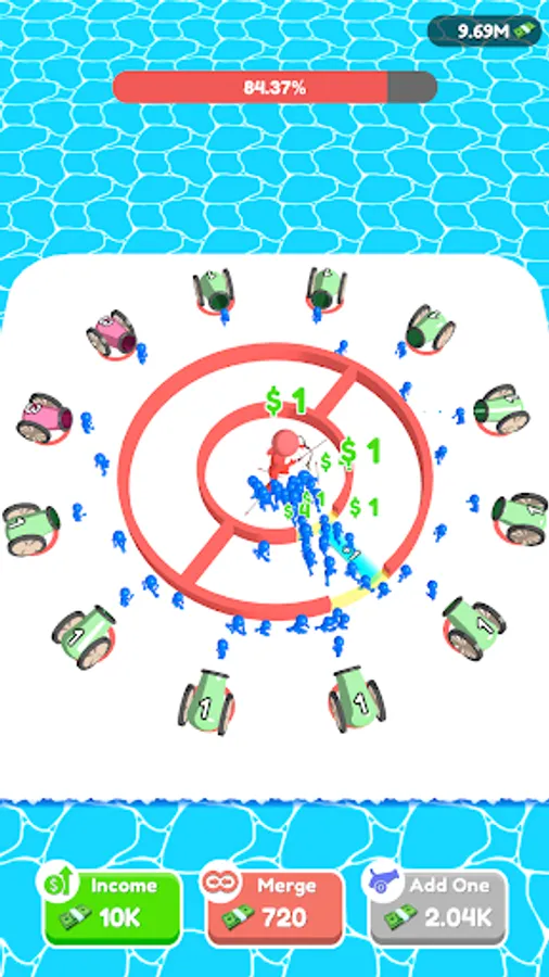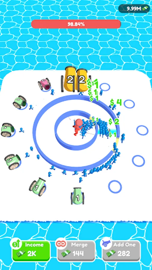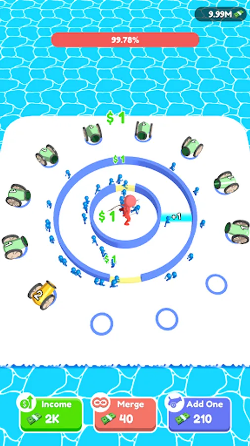 Merge cannons can fire more soldiers to defeat enemies, rotating walls can copy more soldiers.