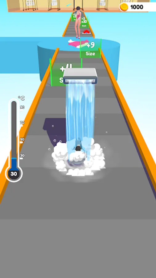 Run the iron, press the clothes flat, avoid obstacles, put the pressed clothes on the shelf to sell.