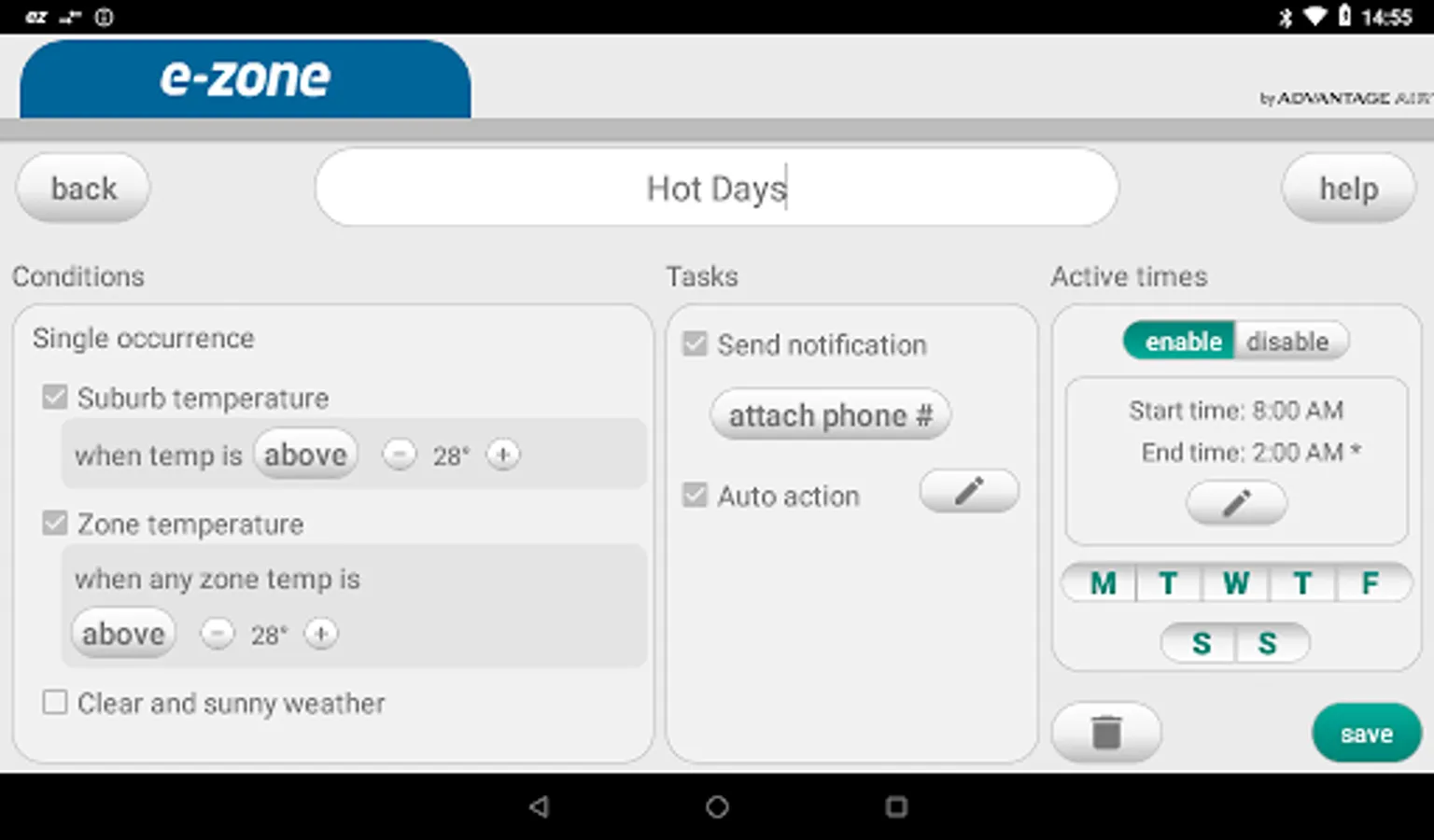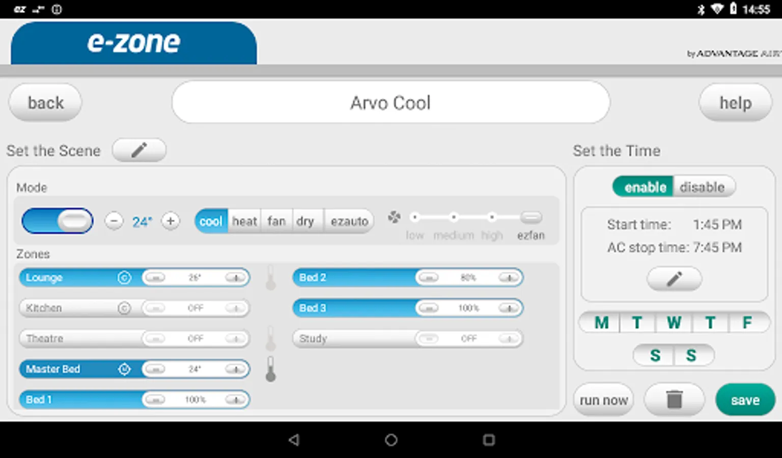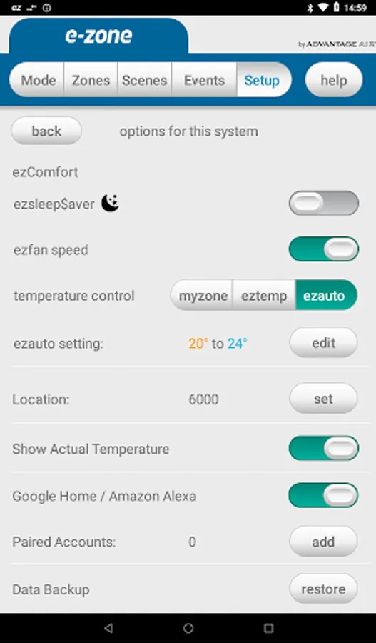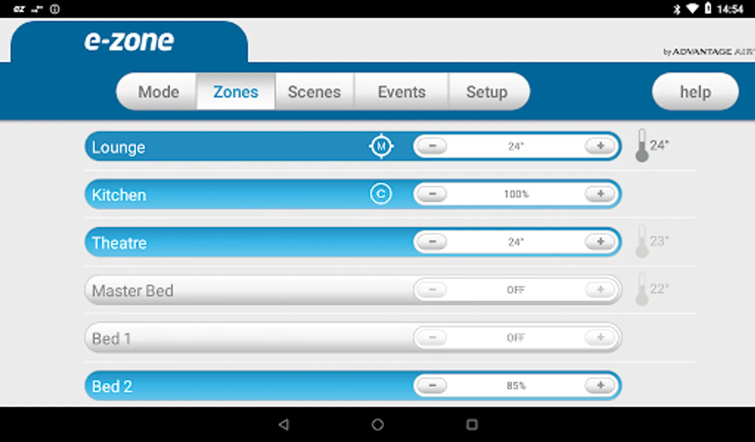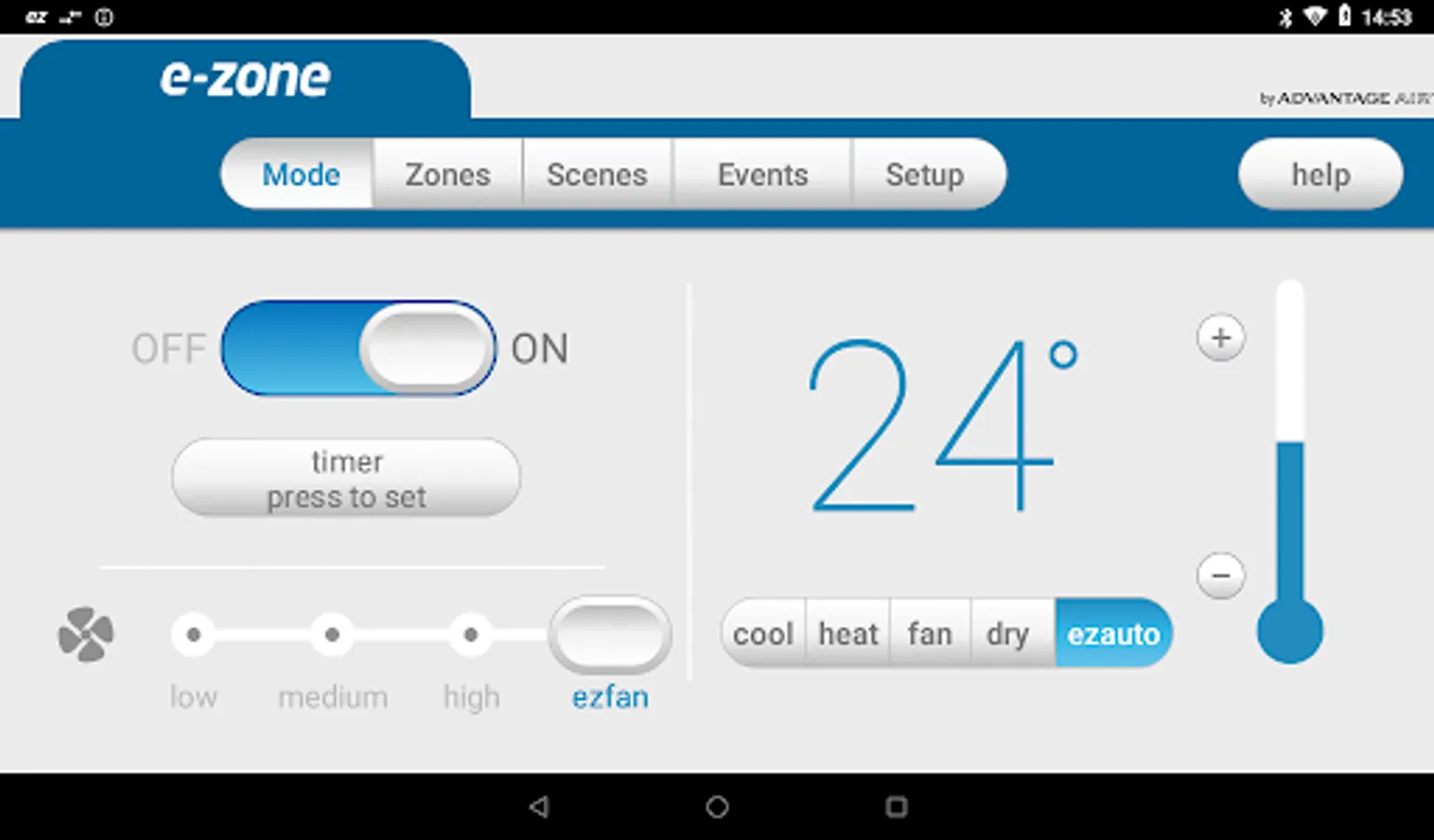 Never get out of bed again! Control your e-zone air-conditioning system from anywhere in your home WiFi zone.