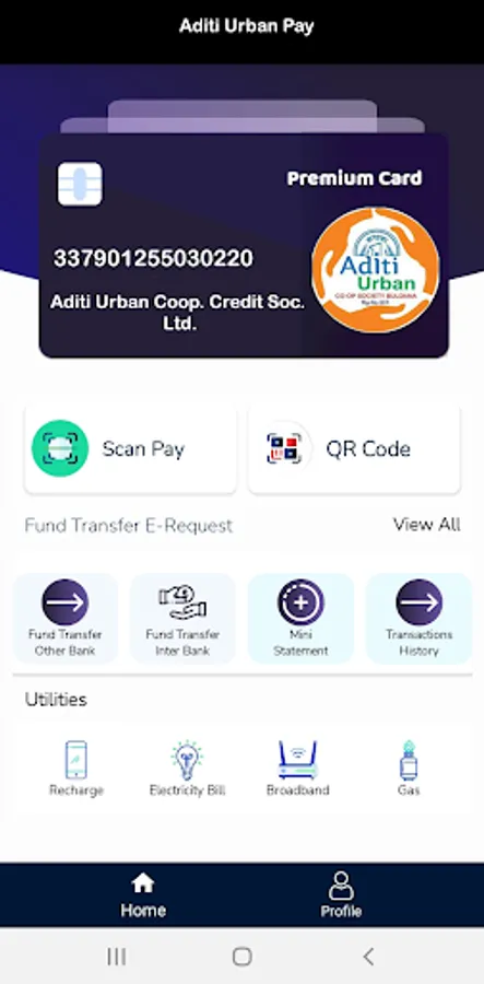 Aditi Urban Pay is use for Quick payment to Account No. , QR Code, view Statement, Balance Enquiry, Utility Bill Payment, Recharge