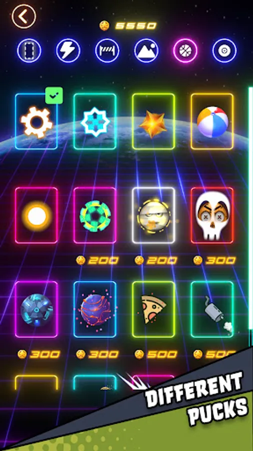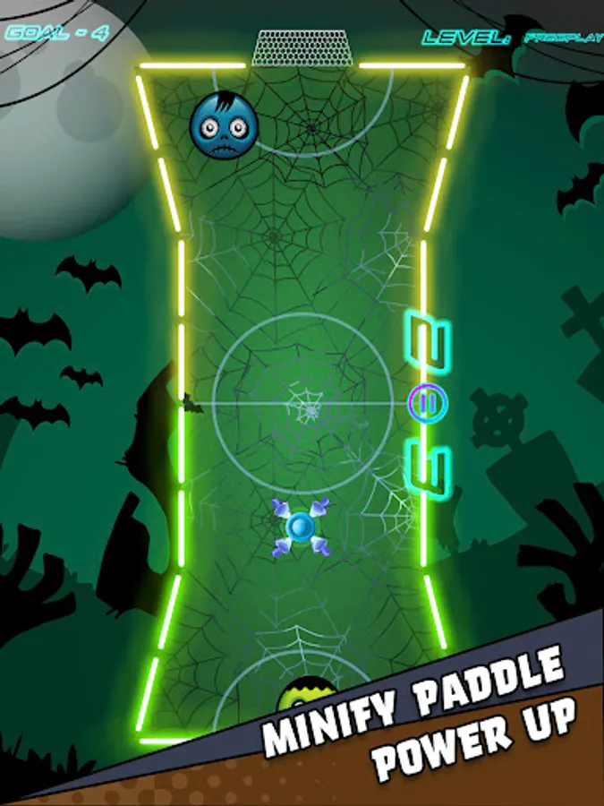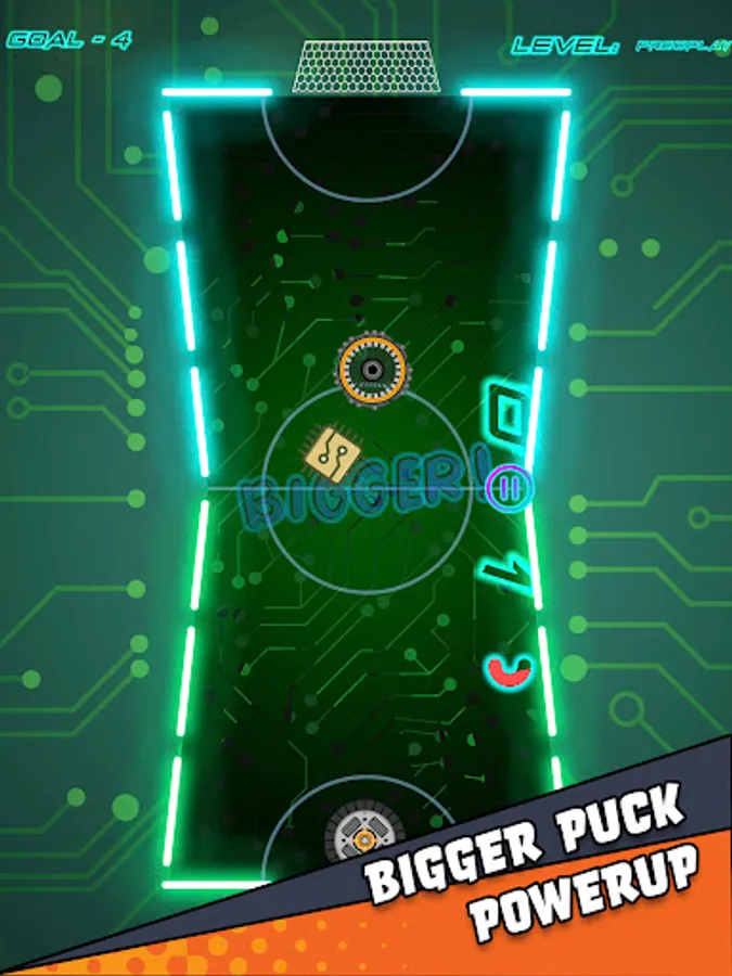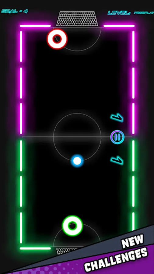 🔘 Three difficulties to choose from for Single Player in glow hockey.