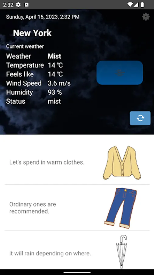 (If you enable location information, the weather information of your current location will be acquired automatically.)