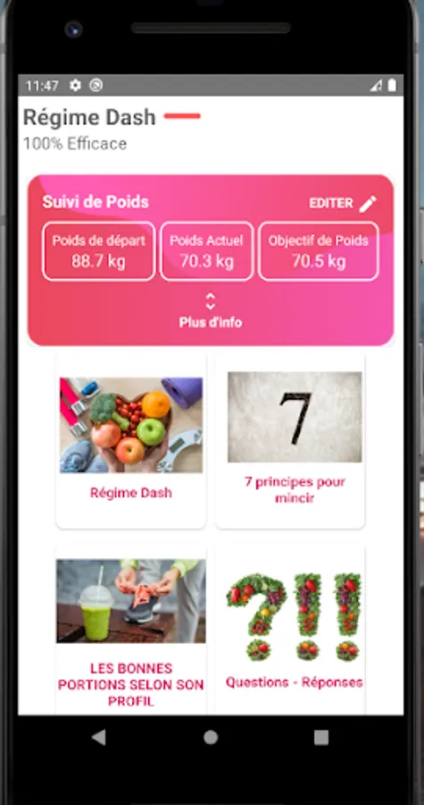 DASH REGIME: regular slimming program divided by a healthy diet into 3 meals (breakfast, lunch and dinner), each diet 14 days, If you follow our daily diet and training, you will notice a big change in your body and your weight You can easily follow the progress of your weight loss