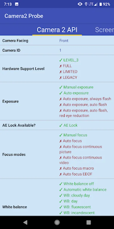 Camera2 API Probe Screenshots