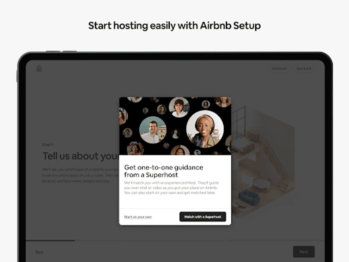 As a new Host, Airbnb Setup matches you with an experienced Superhost in your area who’ll provide one-to-one help from your first question to your first booking—by phone, video call, or chat. You’ll also have one-tap access to Community Support agents to guide you through anything from account issues to billing support.