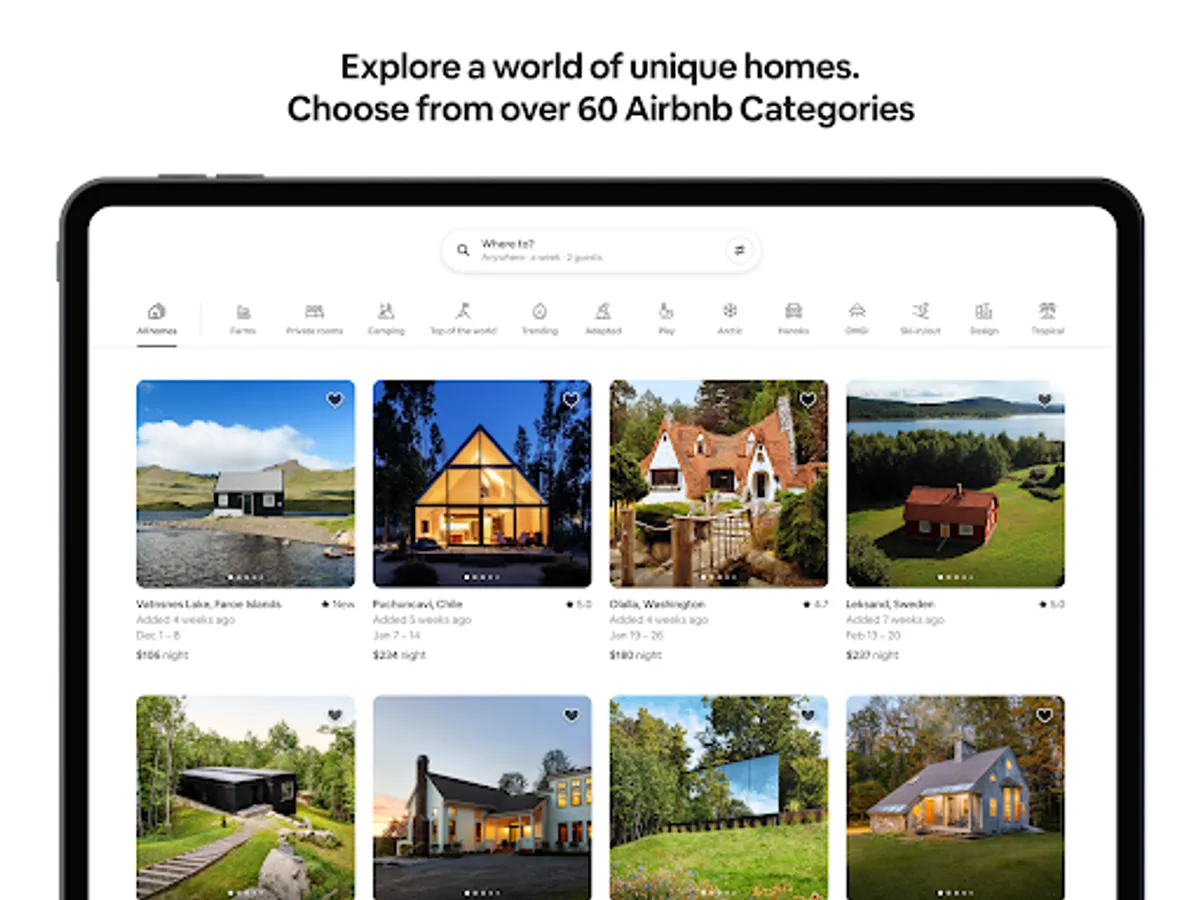 Explore our curated collections of homes chosen for their style, location, or nearby activities. Whether you’re looking for a cozy cabin with views or apartments by the beach, Airbnb Categories helps you find places to stay that are right for your trip.