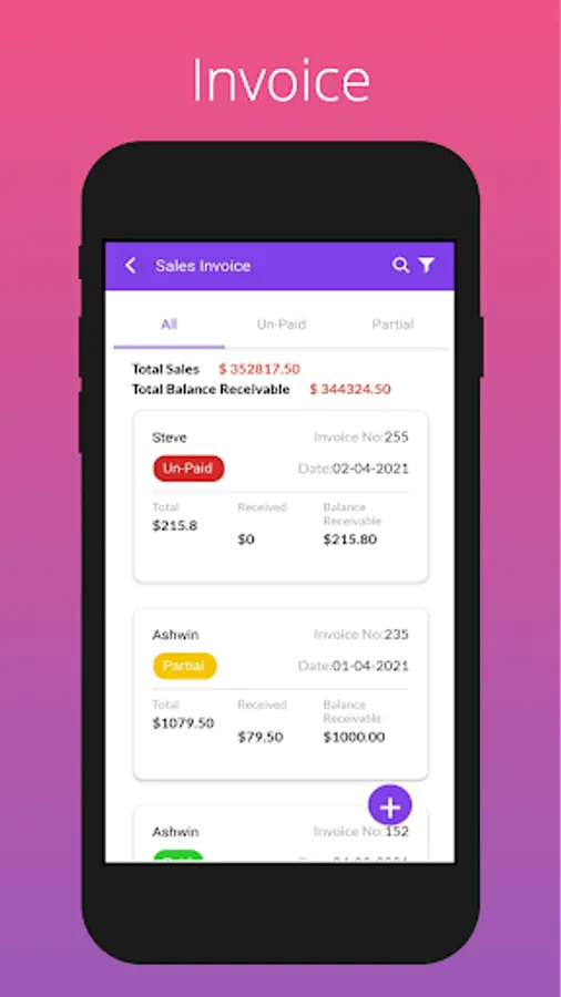 Quickly create Customers or Suppliers before sending out invoices or bills, import contacts from your device. View the list of each customer or vendor transaction.
