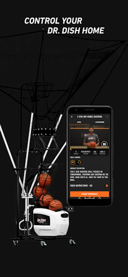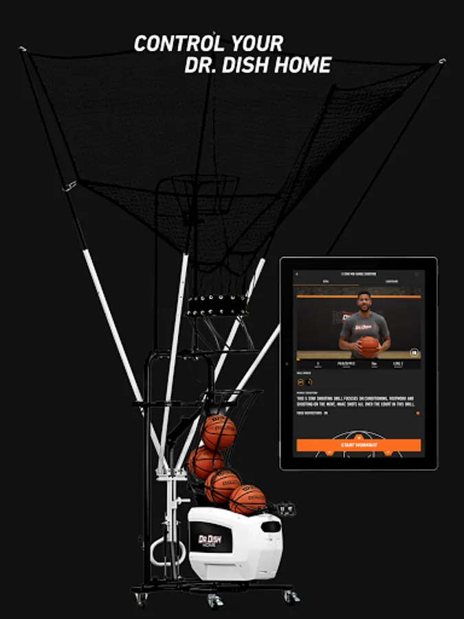 Use the Dr. Dish Player App to view your shooting analytics and trends, browse new workouts, and execute drills. When training on the Dr. Dish Home, control the machine with your phone or tablet while simultaneously tracking every made and missed shot. Training on a Dr. Dish develops muscle memory, improves shot arc, saves time, and provides unlimited access to on-demand shooting, dribbling, and agility drills.