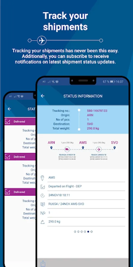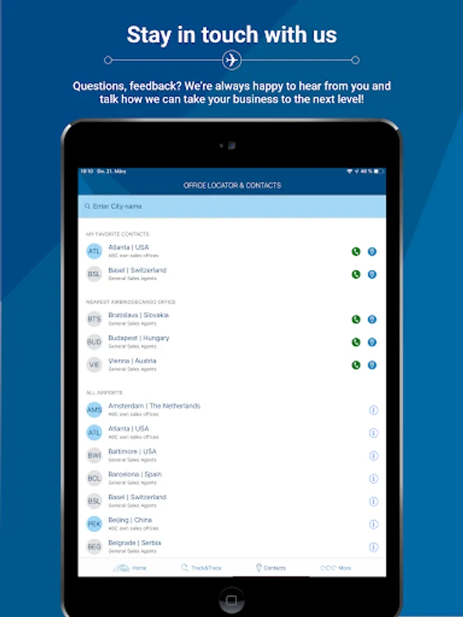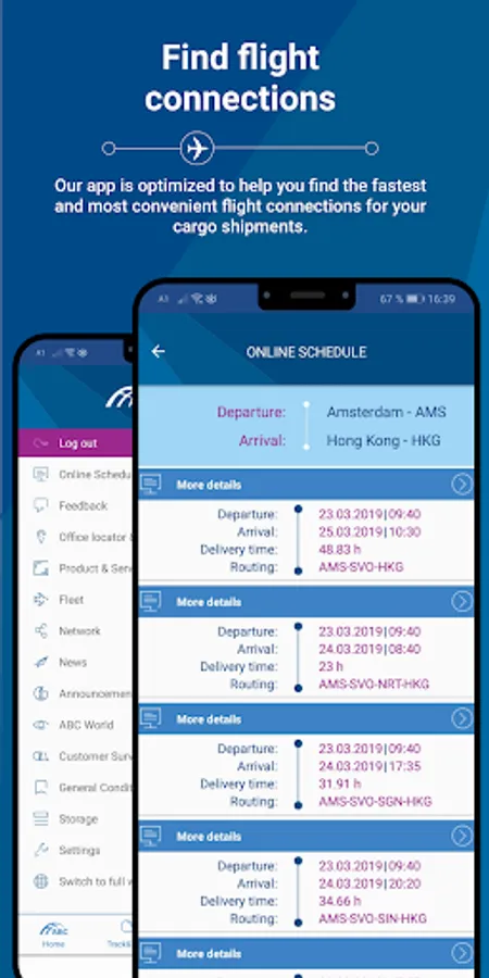 Download the new AirBridgeCargo App and benefit from numerous features our application has to offer.